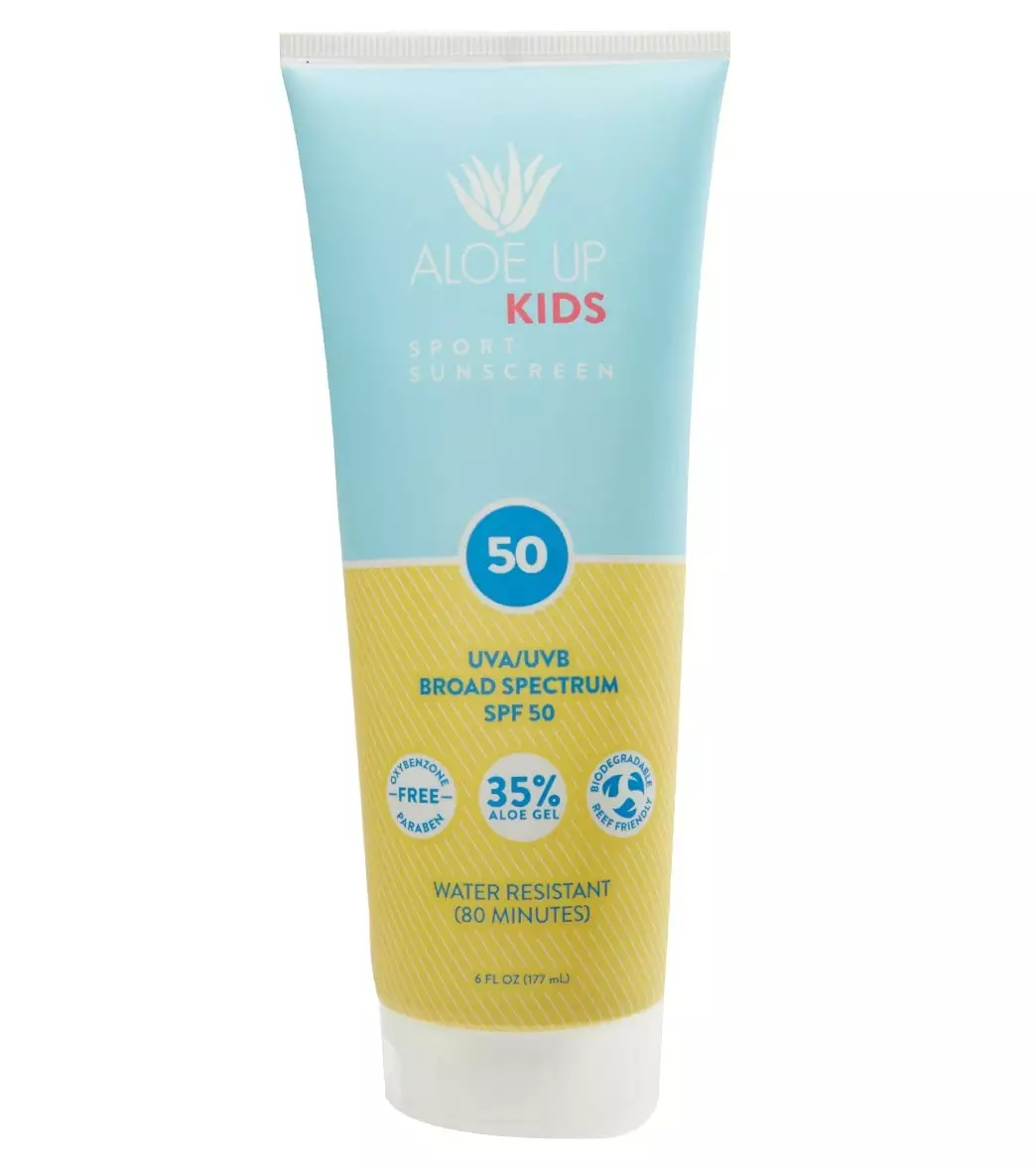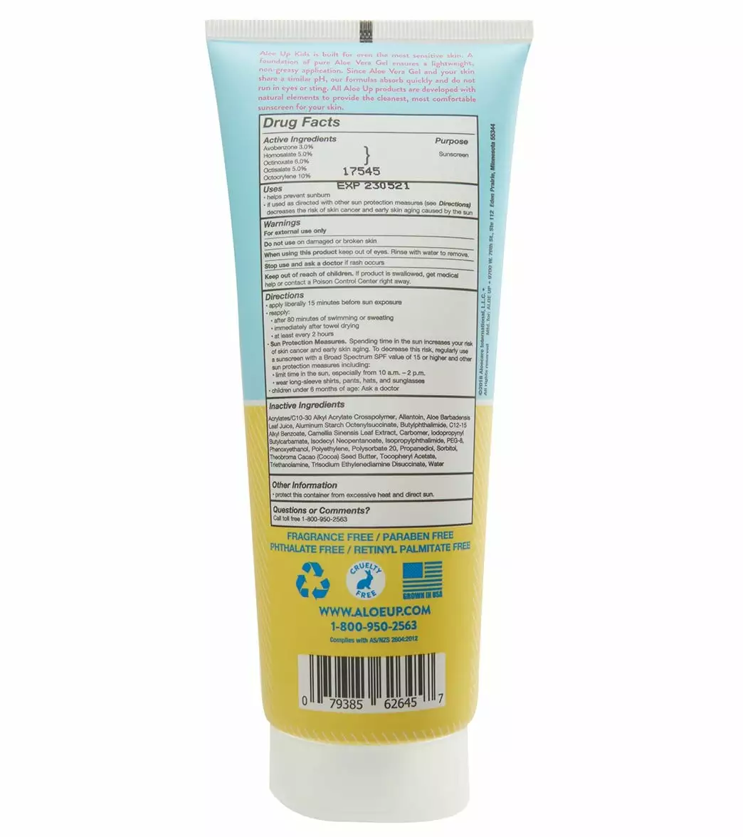 Keep your little ones safe from the sun’s harmful rays with this Aloe Up Kids SPF 50 Lotion Sunscreen, a quick-absorbing lotion for a non-greasy application. Formulated with natural ingredients, this waterproof sunscreen is made fragrance free with no oxybenzones, parabens, or alochol so you feel confident about what you put on your kids’ skin.