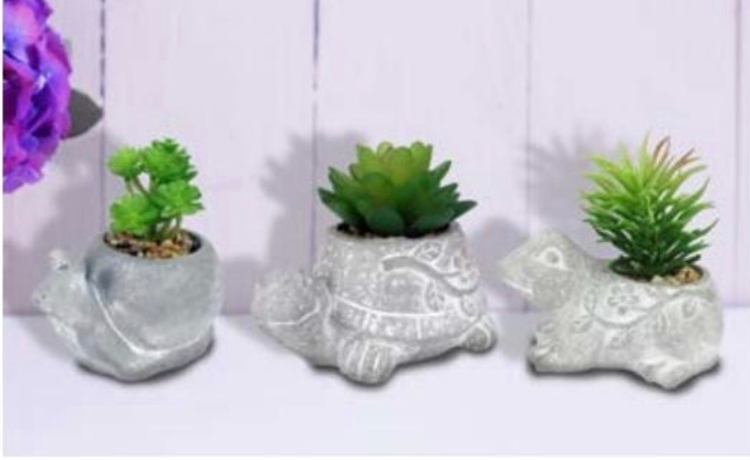 Alpine Cement Animal Pot w/Succulent – Assorted