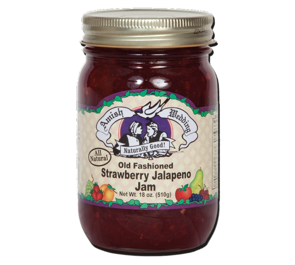You owe it to yourself to try the old-fashioned taste of Amish Wedding Foods’ Strawberry Jalapeno Jam (18oz) that is “Just Naturally Good.” It is 100% all-natural with no artificial colors or sweeteners. The delicious flavor floats out of the jar!