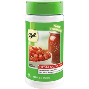 How many tomatoes is your garden producing? This handy canister allows you use only the amount of spices needed to preserve the fresh tomatoes you have on hand – whether you have a just a few or bushels. Create salsa as your garden produces with no waste. Just add to diced fresh tomatoes. Ball’s new reformulated blend of natural flavors has more vegetable particulates to create a flavorful mouth-watering salsa! Serve it fresh or preserve by canning. Ball® brand, 6.7 oz. Makes up to 8 pints.