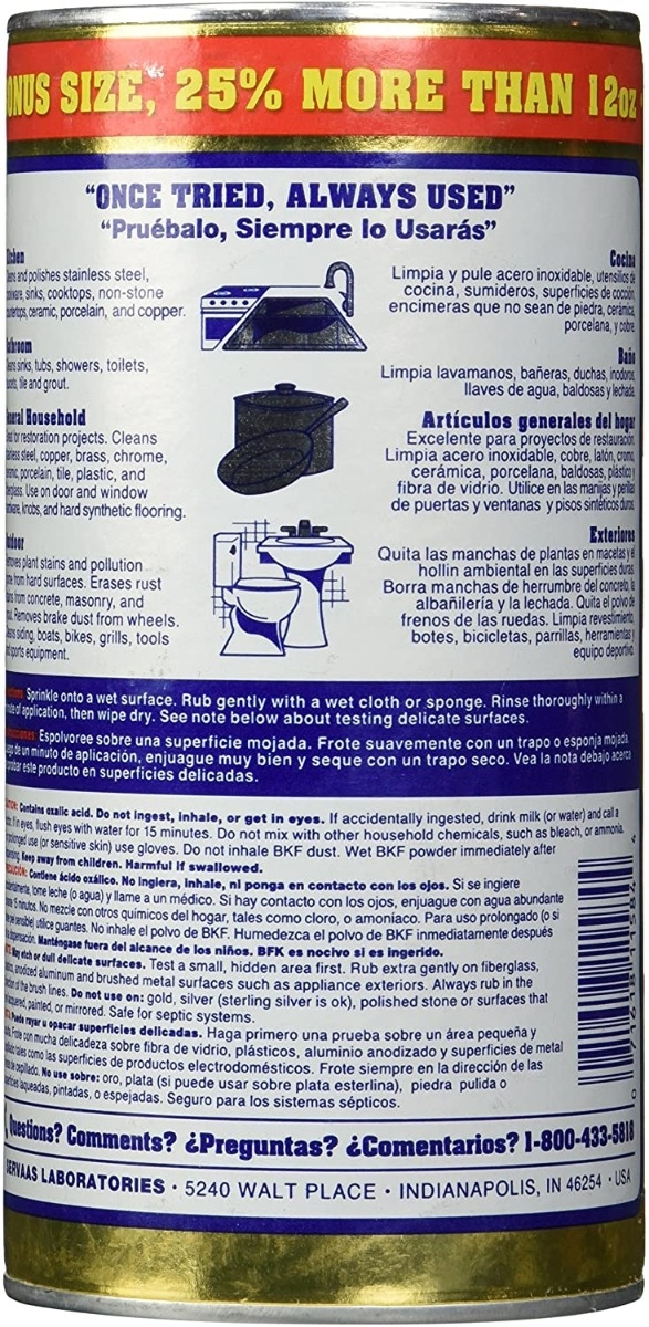 - BKF does not contain bleach, making it ideal for cleaning stainless steel
