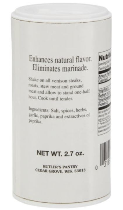Sprinkle this seasoning on wild game, or even mix with water into a marinade for the meat. This is a dry blend of spices, onion and garlic with natural hickory smoke infused right into the seasoning to give you a flavorful, smoky sweet flavor.