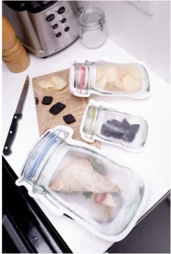 No need for heavy jars with these brilliant reusable zip closed storage bags. Clever design allows bags to stand when filled. Dishwasher safe, durable & leak proof.