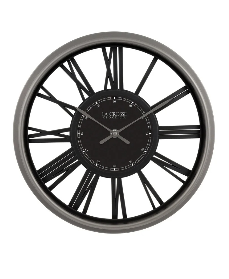 Classic styling meets quartz precision in La Crosse Clock Company’s Oxford Wall Clock. Oversized floating Roman numerals in gray metallic frame, metal hands with glass lens bordered in a handsome 13″ plastic frame. Designed to compliment home or office spaces