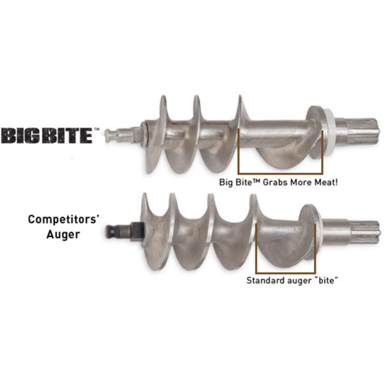 Our exclusive Big Bite technology allows the auger to take an extra big bite of meat and then move it into the grinder head quicker than other grinders. The benefit? You grind larger cuts of meat faster without clogging up the machine! A premium grind in half the time!