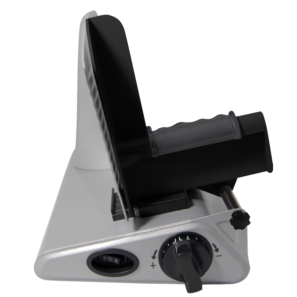 Shaved deli meat or thick, sliced bacon, this sturdy, powerful slicer is perfect for home use. Suctioned feet provide stability; removable food table and clear plastic pusher (to product hands while holding meat in place) make for easy cleanup. Includes both 8-1/2″ fine AND serrated blades with quick remove dials.