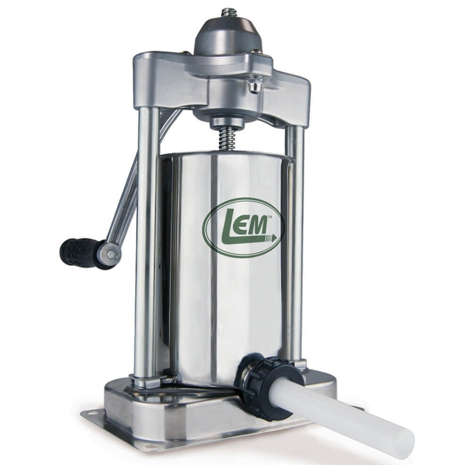 The Mighty Bite 5 lb. Stainless Steel Vertical Sausage Stuffer sets the bar for performance and dependability. The precision machined carbon steel gears are manufactured to eliminate slippage and wear, and won’t rust or collect germs. The cylinder is easily removed for clean-up. The hard plastic piston with a built-in release valve allows air to escape, making your job even easier. These are reliable, high performance, gear-driven stuffers that will last. For additional protection, the 5 lb. Sausage Stuffer now includes a protective gear box cover. This innovation takes safety and durability to the next level by ensuring your gears and your food are well protected.