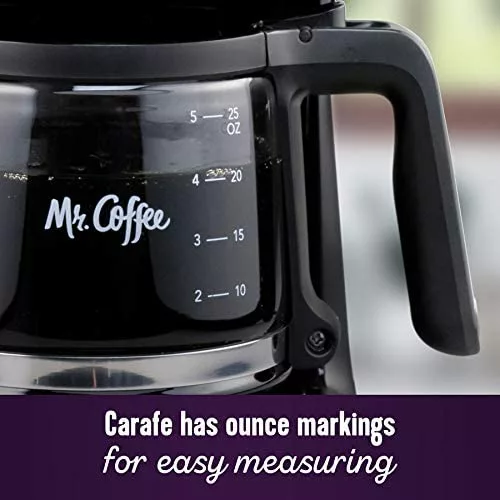 - The Mr. Coffee® 5-Cup Coffee Maker makes up to 25 oz. of coffee—perfect for two 12-oz. cups; easy switch with power indicator lights up to show coffee maker is on, or to remind you to shut it off