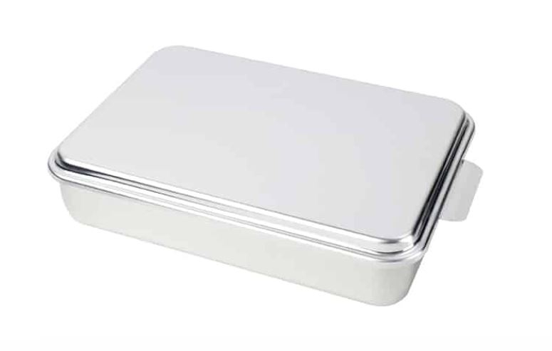 The NESCO Aluminum Cake Pan is perfect for those all-year-round special occasions like picnics, family gatherings and graduations. The classic, natural aluminum pan and cover ensures durability and portability that will last. The aluminum pan is the ideal size for cakes, brownies, and other delicious treats. The snap-on cover will keep foods fresh and doubles as a cookie sheet. NESCO Aluminum Cake Pans are a great gift idea for friends and family.