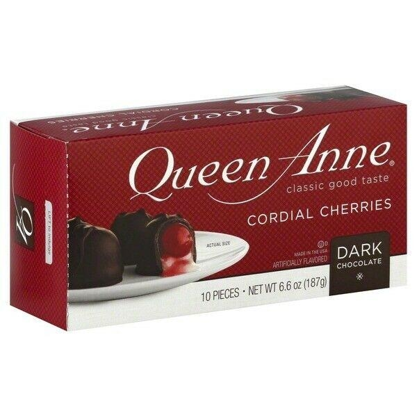 - Contains one (1) 6.6oz, 10pc Queen Anne Chocolate Cordial Cherries carton