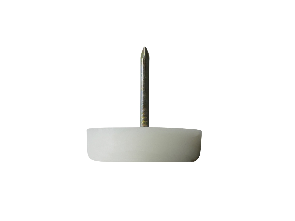 •Plastic base glide with integrated sharpened tip nail for attaching to wooden legs and heavy-duty beige felt underside to protect floors