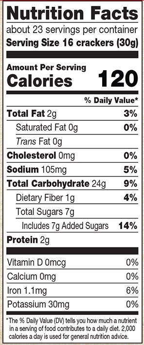 - ENRICHED FLOUR (WHEAT FLOUR, NIACIN, REDUCED IRON, THIAMINE MONONITRATE [VITAMIN B1], RIBOFLAVIN [VITAMIN B2], FOLIC ACID), SUGAR, SOYBEAN OIL, HIGH FRUCTOSE CORN SYRUP, SALT, BAKING SODA (FOR LEAVENING), SOY LECITHIN (AN EMULSIFIER), NATURAL FLAVOR, SPICE.