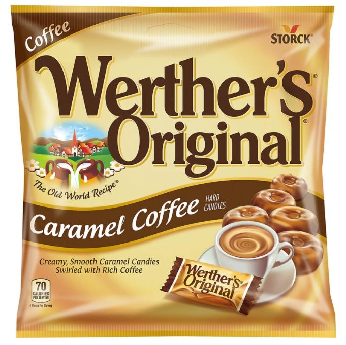 Werther’s Original Hard Coffee Caramel Candies are decadently creamy hard caramel candies swirled with the flavor of rich, sweet coffee. Enjoy a sweet treat with Werther’s Original Caramel Hard Candies. They melt smoothly in your mouth, leaving a buttery sweet taste that lingers. Werther’s Original is made with only the finest ingredients blended together with the same passion and care our first candy maker, Gustav Nebel, brought to every candy he crafted. Made with real butter and fresh cream, for a one of a kind taste.