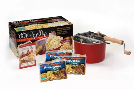 Also included in the Whirley Pop Theater Gift Set are three per-measured all-inclusive popping kits with popcorn kernels and movie theater butter as well as instructions and dozens of great tasting recipes.
